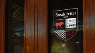 Steak frites St-Paul - Publicité adhésive, lettrage vitrine Estrie